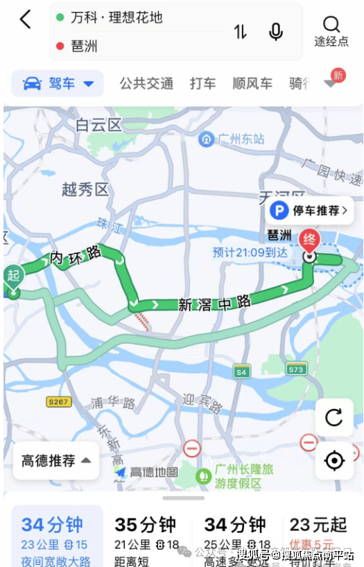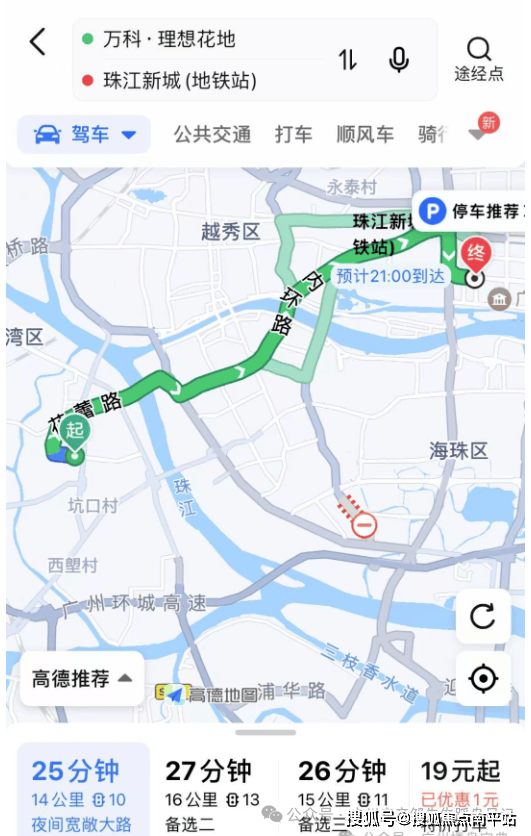 自驾或地铁通勤珠江新城:小区出来走花蕾路转内环路即可到达珠江新城,全程14公里耗时25分钟,打车19块,地铁12站耗时40分钟。