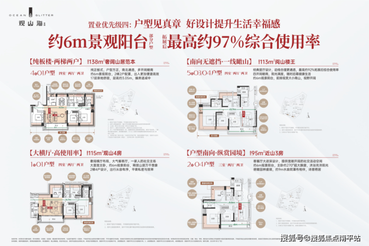 匠心户型设计:观山海始终秉持"建筑是生活的容器"这一设计哲学,充分考量现代家庭的生活动线,将自然景观与生活空间融合,特别是对采光、通风等居住关键要素的精准把控,让居住回归舒适本质,让生活彰显应有品位。