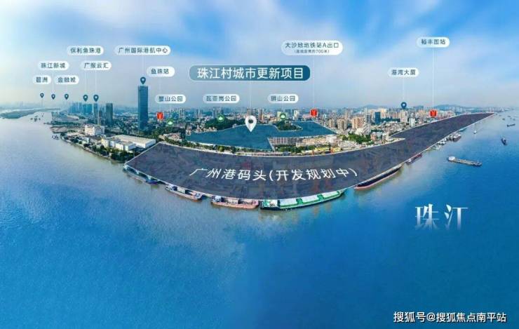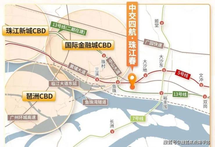 项目位于黄埔区鱼珠核心CBD板块,距离港航大厦直线距离仅约800米,5号线鱼珠与大沙地之间,是老黄埔旧改中最靠近天河的项目。
