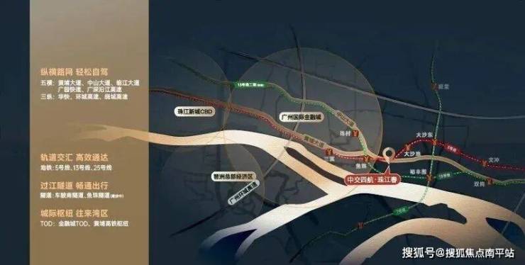 项目距离地铁5号线鱼珠站和大沙地站双地铁站约800米,目前就能通过地铁5号线直达金融城、珠江新城,未来13号线二期开通后,也通过鱼珠站直抵珠江新城。