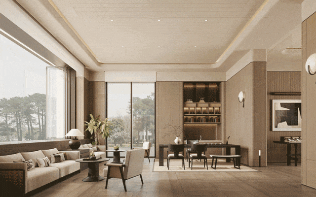 项目更以 “林语潮音·谧境栖居” 为主题,独创馥棠七幕园林,从尊崇门庭、流光泳池到漓岛芳洲,七重场景渐次展开。