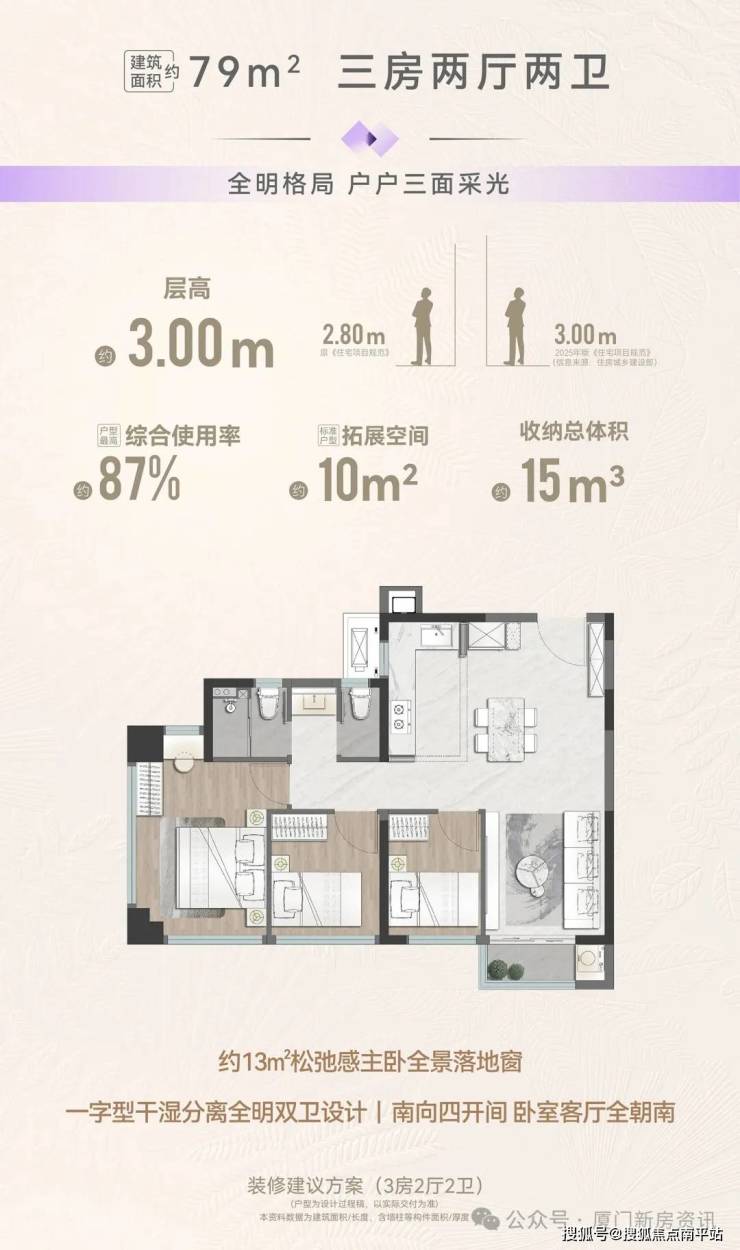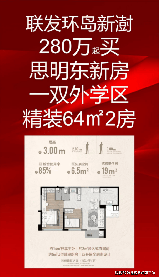 280万起抢思明一双外64㎡2房!85%的高得房率,相于市面上75㎡的户型使用空间,击穿岛内思明区新房房价底线。