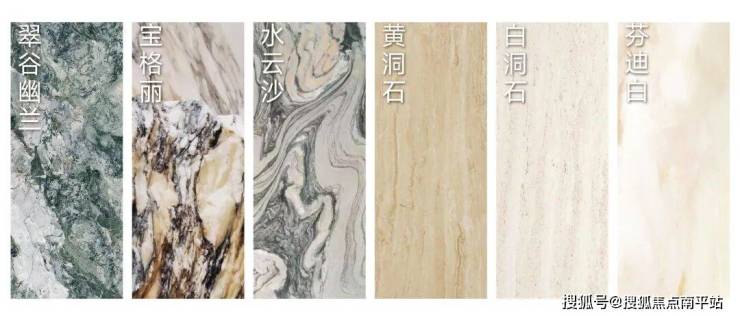 巴西近乎绝迹「翠谷幽兰」、会呼吸的意大利「超白洞石」、柏悦酒店同款「水云纱」……数十种的石材,看得出都是“经费在燃烧”。