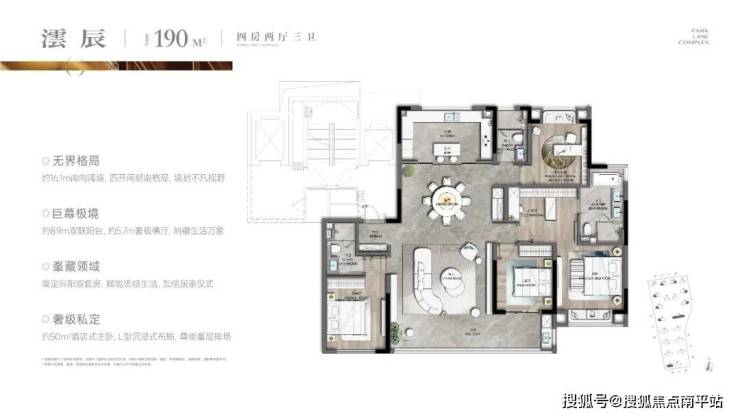 澐璟打造建面约160-340㎡超级大平层,目前主力在售户型为190㎡、230㎡、270㎡和340㎡,都是南向大面宽设计。