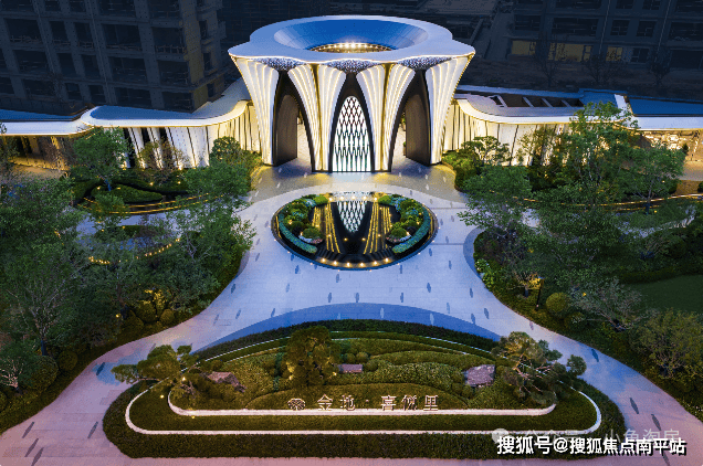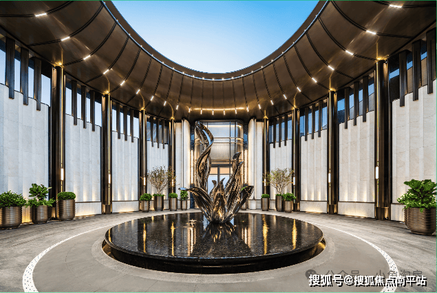 💎【艺术雕塑】以“绽放”为雕塑主题,配有古铜风复古不锈钢主材+主大门水波纹艺术玻璃,先锋设计与高级质感相融合,以建筑美学诠释塔尖活的仪式感。