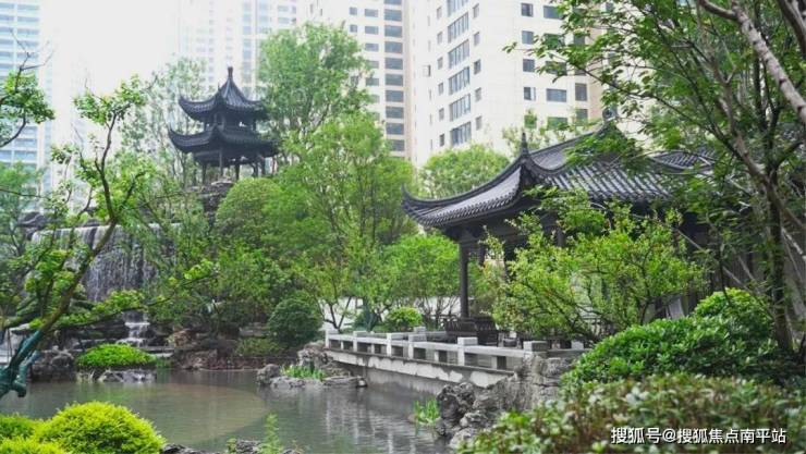 体量约80万方,容积率约3.04、绿化率40%。园林实景是美丽的,内部约3万㎡的中央公园,有山有水有亭子: