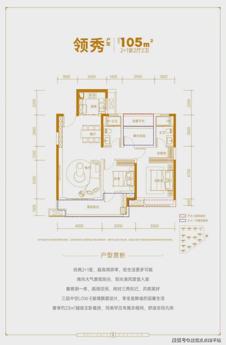 整盘面积段160-265㎡,纯粹大平层项目;目前在售160㎡、180㎡大户型,2T2户纯板楼,得房率高。