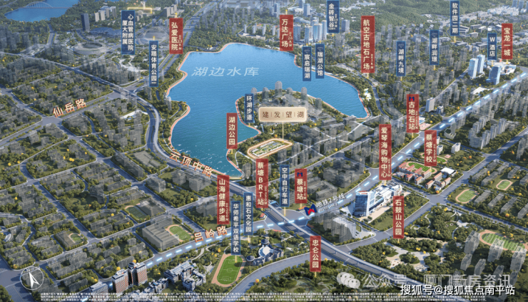 建发望湖站位 湖边水库南岸湖心半岛, 临湖低密宅地,湖景资源与低密属性不可复制。与公园、湖泊的距离恰到好处 — 距离湖岸约136米,尽揽1500米的湖景,在厦门绝对稀缺。多维醇熟配套,地铁,BRT,商业教育环伺。