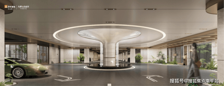 ① 生机之环: 当车轮驶过生机之环的中央车站, 庭院的悬瀑水景,与阳光清风透过穹顶倾泻而下。推开车门,通透敞亮的归家甬道与户外无界联通, 只需几步,即可从车库步入自然庭院。