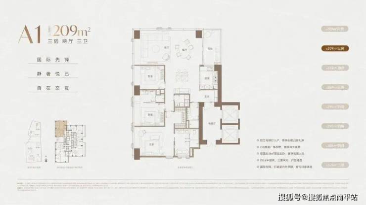 项目设计遵循第四代住宅理念, 每户设有“空中庭院”,部分庭院面积超20㎡,实现推窗见海与绿植环绕的双重体验。住宅全部双梯入户,配备独立电梯厅,提升居住品质。项目整体布局采用全向东设计及错位排布, 尽可能让每户享有海景或城市天际线视野。