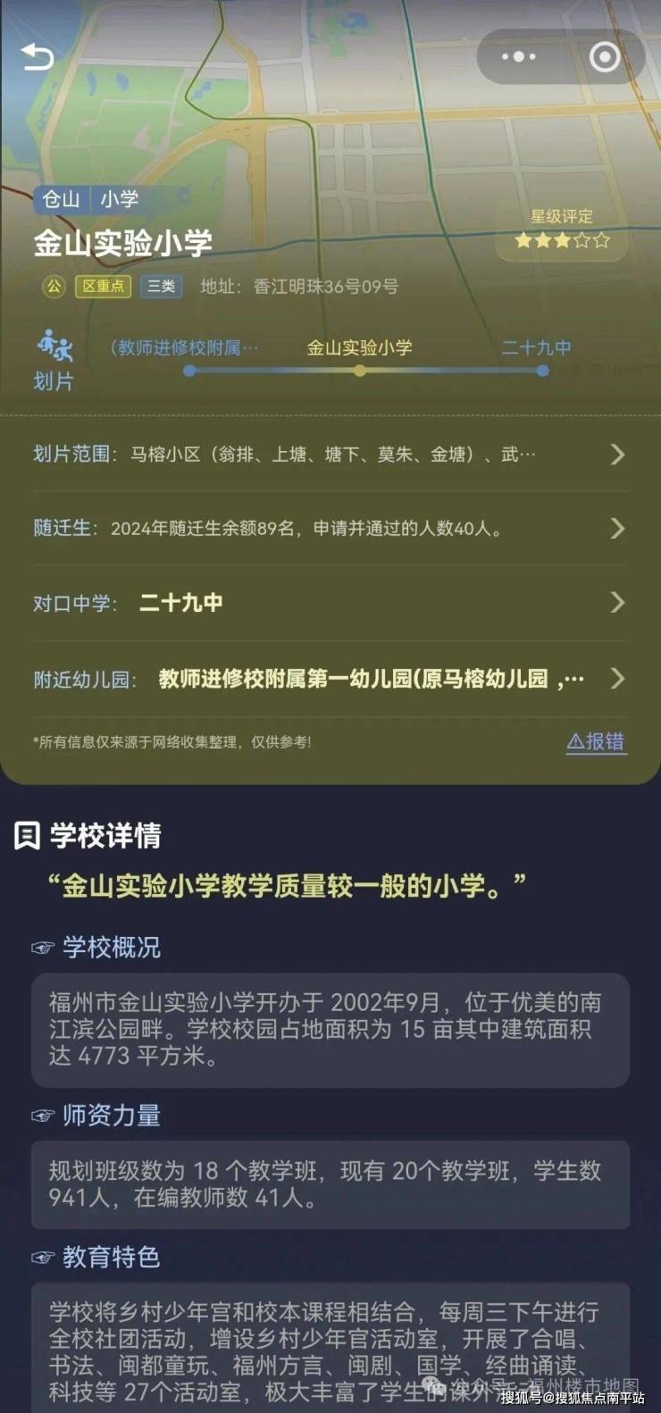 【教育】项目土地公告明确划片福州市仓山小学教育集团金山实验小学(金山实验小学),长期有招收随迁生,对口第二十九中学,属于金山片区底垫的学校,项目整体对口的公立教育资源较弱;但是项目周边有私立学校:里仁学校和云开小学,私立学校的口碑较好,有实力的家庭可以考虑作为陪读房。