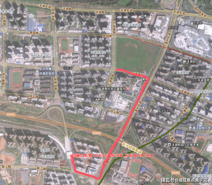 小区北门到地铁口(洋湖湿地站)的测量距离约700米,如下图红线标注的长度。
