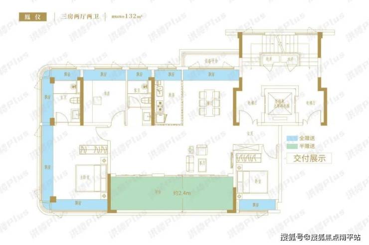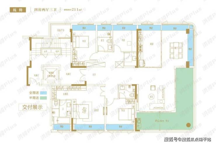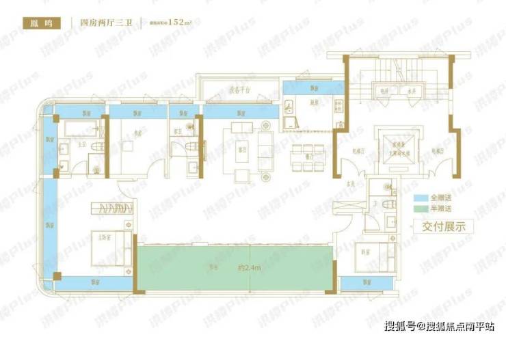 户型其实没啥好说的,现在的户型设计都很卷,基本都是把面宽拉宽,都是四开间朝南,保证采光和通透性。以及将阳台、飘窗都拉满,提高户型的实际使用率,放个户型图就好了。