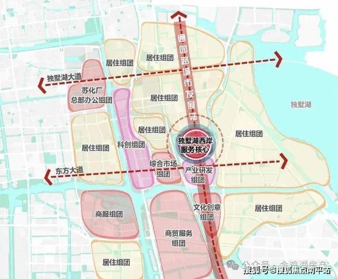 五横两纵路网:金鸡湖大道、东环、娄江快速路、独墅湖大道、常台高速、南环