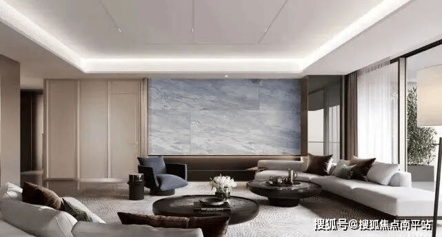 客餐厅清一色的石材地面,主背景墙搭配碧海云天奢石;厨房配置嘉格纳蒸烤一体机/电磁炉、博士四件套,全屋大金中央空调等,都刷新了豪宅甄选标准。