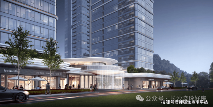 环幕玻璃+白金线条+柔性转角设计,主张让建筑在湘江畔生长,消隐于天地。借以金镶玉的高级工艺美感,呈现出卓尔不群的建筑质感。