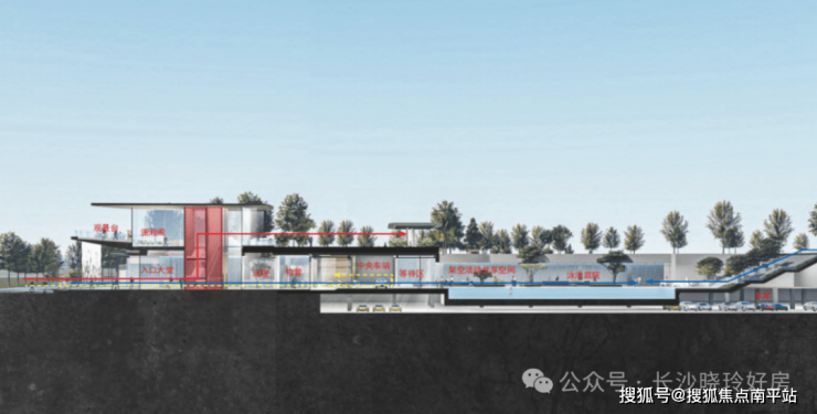 中央庭院:串联起山体花园、下沉度假泳池、中央车站、功能会所、晴雨廊巷、潇湘楼阁和架空层等园区公共生活配套,构成一个更为丰富、立体的社区生活体系。