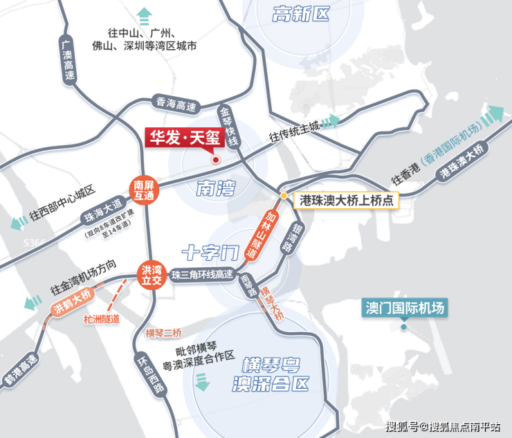 珠海交通大动脉, 金琴快线-南湾大道串联高新区、十字门与横琴,实现全城快速通勤;凭借 “轨道+大桥+口岸” 的立体路网, 贯通珠海辐射湾区 。