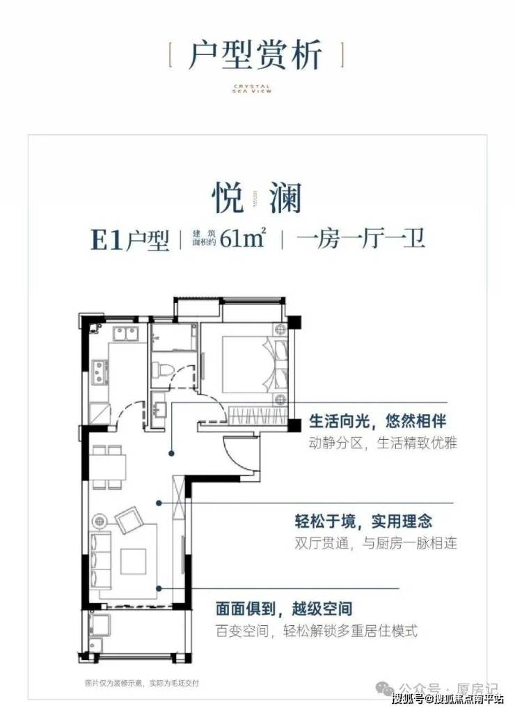•主力户型有59-61平的一房,80-88平的两房两厅两卫,以及122-131平的三房三卫,户型多为南北通透、动静分离设计;
