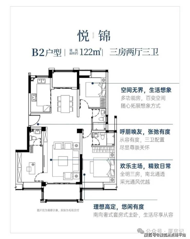 •总户数:约847户;容积率1.2,绿化率40%;层高3米,车位配比为1:1.2;