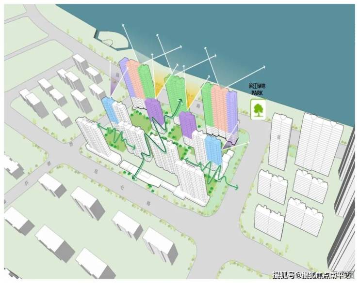 3.高品质规划:大围合社区,增加大中央景观+多组团景观组合,楼栋错位布局,栋栋南北皆景;规划高层+小高层矩阵,释放空间,最大楼间距可达44米;近600米全域环形风雨连廊,减少公摊的同时,呵护归家路。