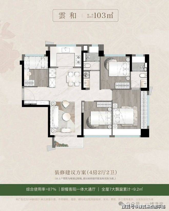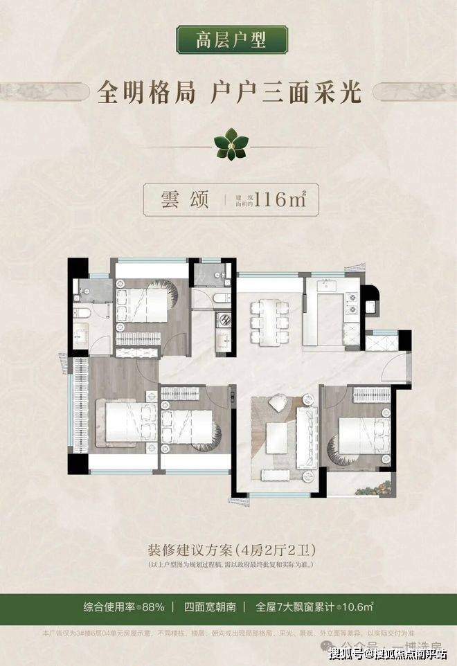更具突破性的是其“可变量空间”设计:116㎡户型通过LDKB一体化厅与7处飘窗系统,可随家庭结构变化自由切换为亲子乐园、居家办公或长者照护空间。这种弹性设计思维,使住宅真正成为承载生命历程的容器,而非凝固的功能盒子。