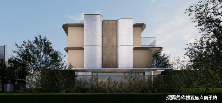 游艇甲板艺术造型:建筑立面汲取游艇甲板的层叠美学,搭配香槟金色金属线条,勾勒出灵动而富有张力的轮廓,宛如停泊于紫琅湖畔的奢华舰艇。