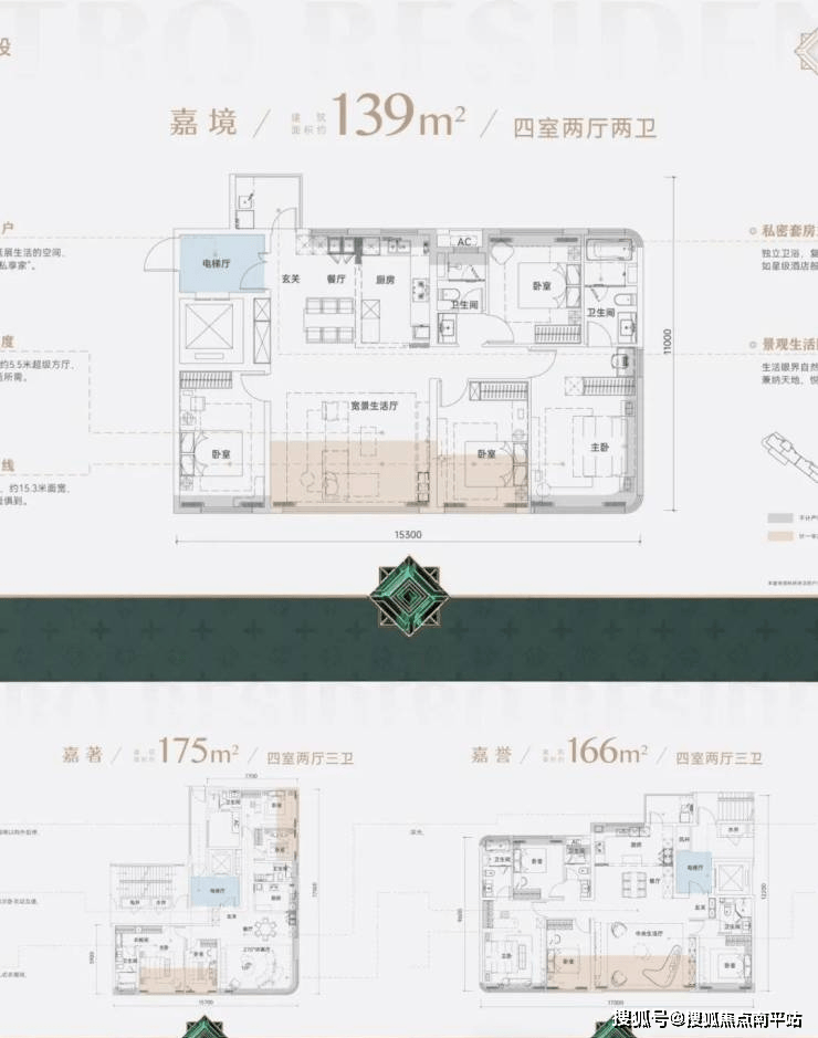 面积段:139-166-175平,四房两卫和四房三卫