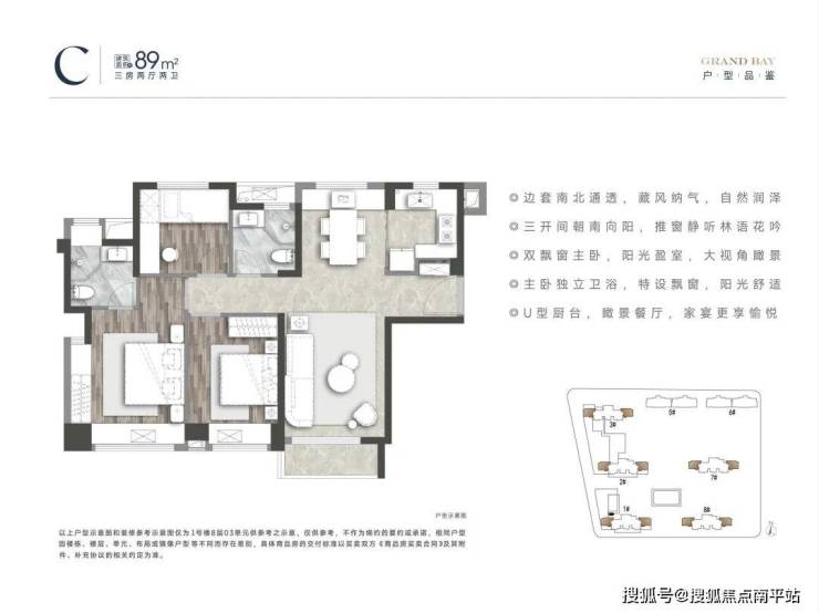 89㎡通透边套三房: