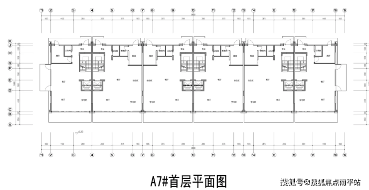 联排A7南立面图如下:首层层高3.9m,2、3层都是3.6m