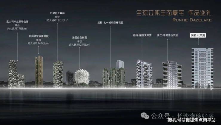 润和大泽湖开创湖湘超级豪宅产品革新,在传统大平层的基础上,通过垂直绿化的空间形制、空中庭院产品形态,以曲直并进的立面设计,体现超前时代的世界审美。