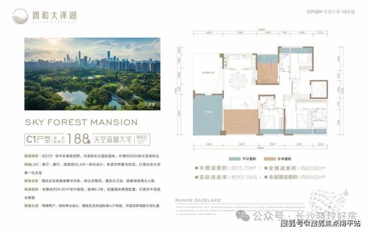 产品类型:建筑面积约188㎡天空森林大宅&197㎡流光天幕大平层