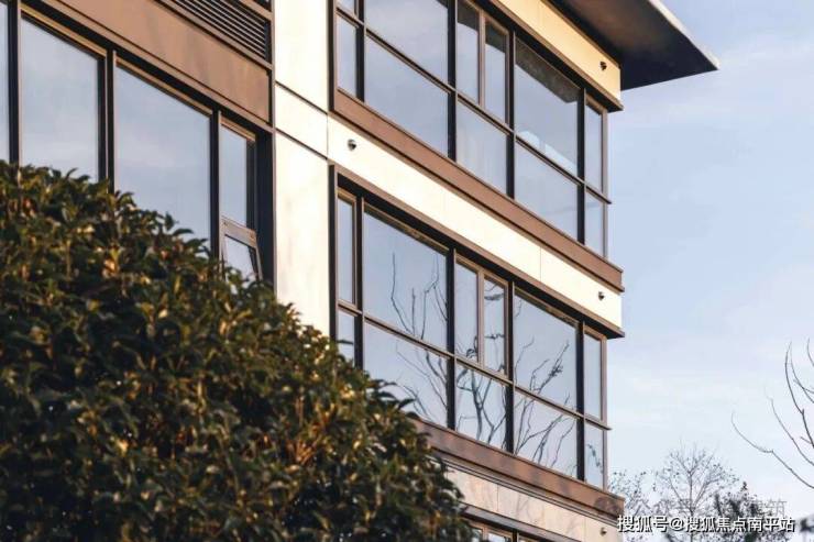 项目外立面保持了简约利落的线条,以低饱和度暖色系珠光白铝板打底,搭配简约内敛的金属边框和大面积的玻璃幕墙,,营造建筑有层次的肌理和美感。