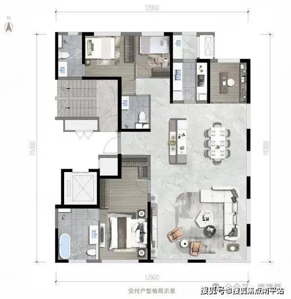 再如昆明龙江金茂府建面约269㎡“楼王”户型,打造超级边厅。
