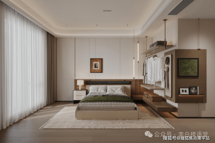 南向双卧套房布局,其中主卧开间达4.9米,南北通透,带衣帽间+大卫生间+灵动空间,面积达约32.3㎡,媲美五星级酒店行政级套房,二人世界私密性十足。
