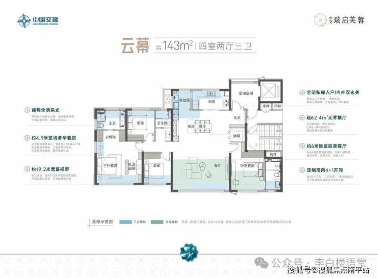 这个户型,实际得房率高达112%,可媲美传统约180㎡大平层!,可以说是长沙新规户型中的“天花板”,在小红书上被全国网友疯狂点赞,被誉为全国Top1的143m²户型。挑最重要的三个亮点分析: