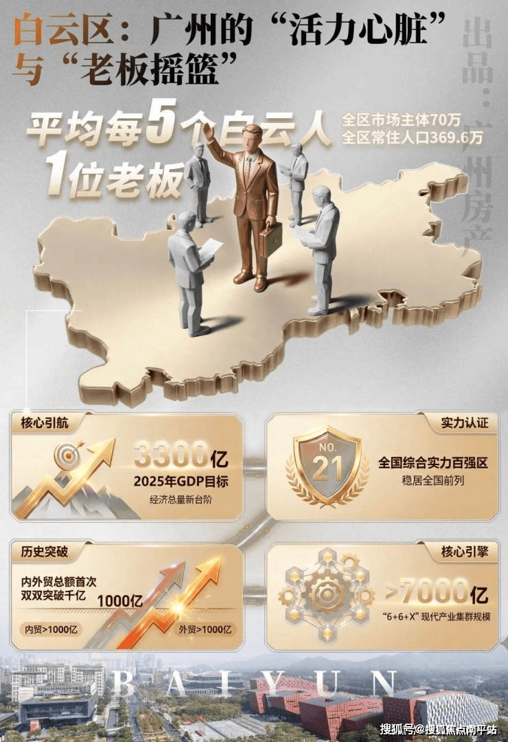 2025年,白云区GDP剑指3300亿,跻身全国综合实力百强区第21位,赛迪创新百强区第20位。