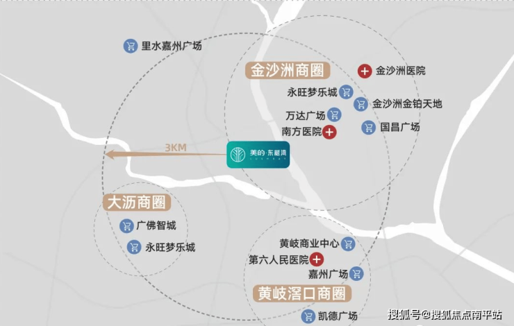 美的·东樾湾踞守广佛融合桥头堡大金沙洲,周边旗峰小学、旗峰中学、里水高级中学、石门中学等多所省市一级学校环聚,揽金沙洲、大沥、黄岐3大商圈。