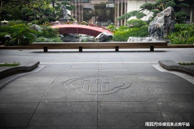 “状元桥”两侧以流水板岩隐喻泮池,隐含圣人乐水, 以水比德之意。上方天圆地方,天圆象征着聚宝盆。
