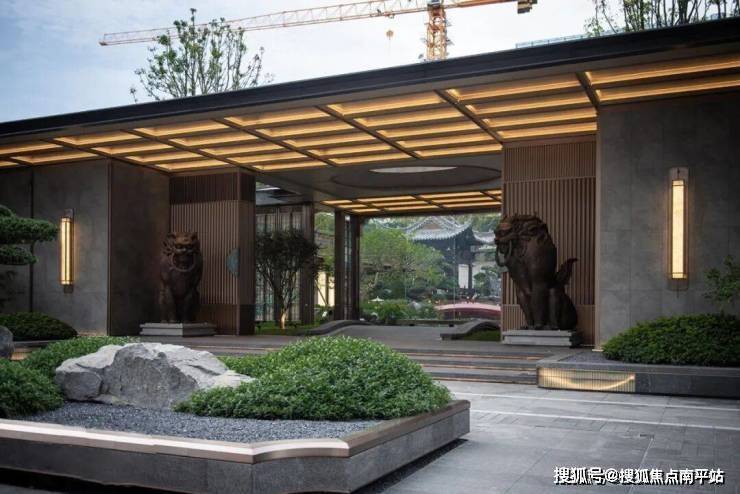 入口来源书院一进院“文星门‘象征着天上文星聚集于此,演绎书院门第府苑,两侧【椒图】彰显归家礼序。“椒图”是龙生九子的第九子,有看守、镇邪、庇佑的寓意,象征着吉祥、护佑好运。