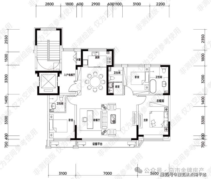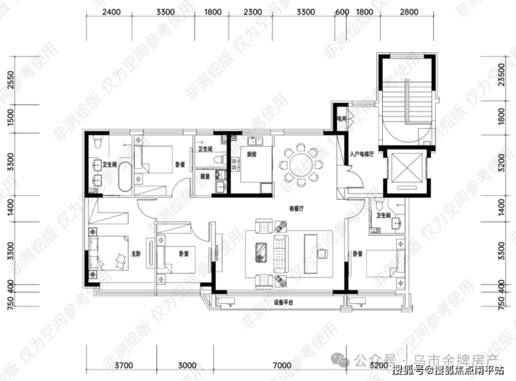 套房主卧增配前室,殿堂式起居空间