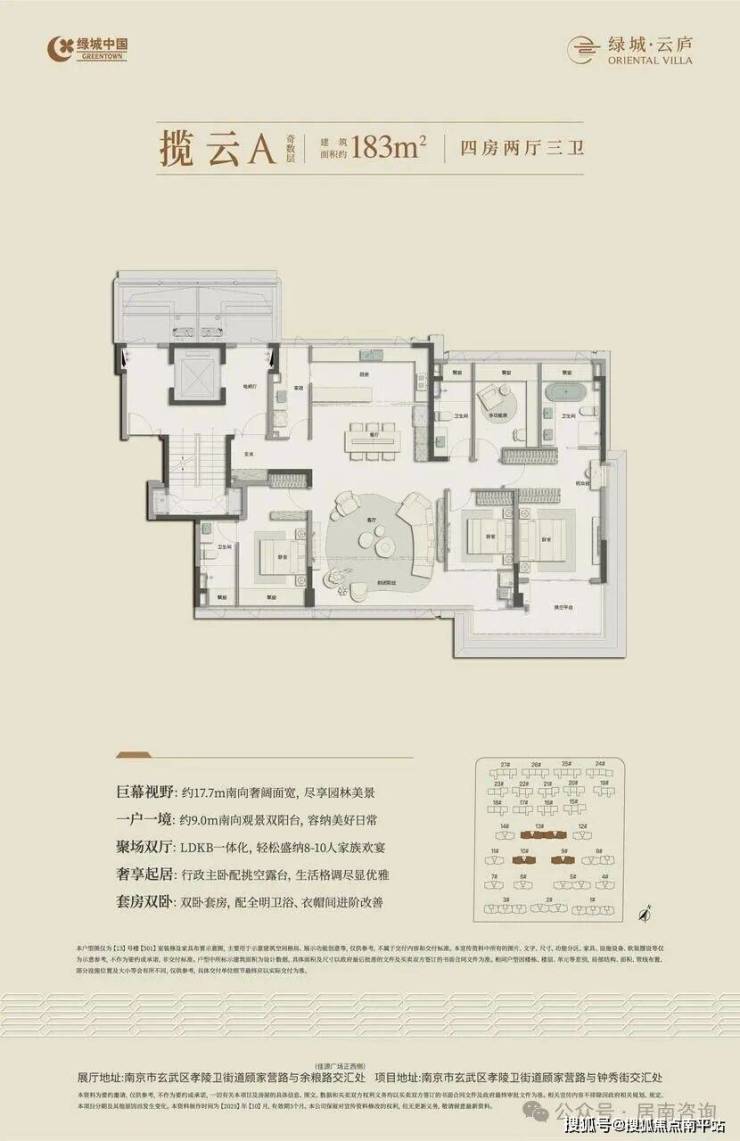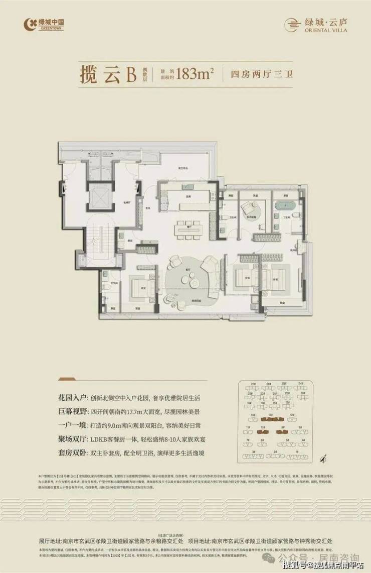 3F超低密低层:305㎡、325㎡、370㎡大户型,依托紫金山南麓景观带,部分户型可享山景视野,直接满足家族式居住需求。