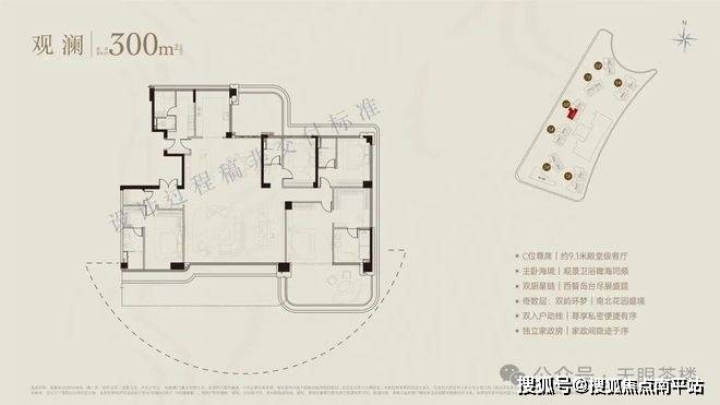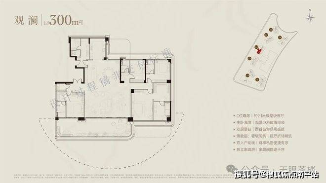 300-436㎡户型:约9.1米殿堂级客厅,双厨星链,总统主卧套,双序衣帽间,独立家政房,270°环幕海天巨幕视野。