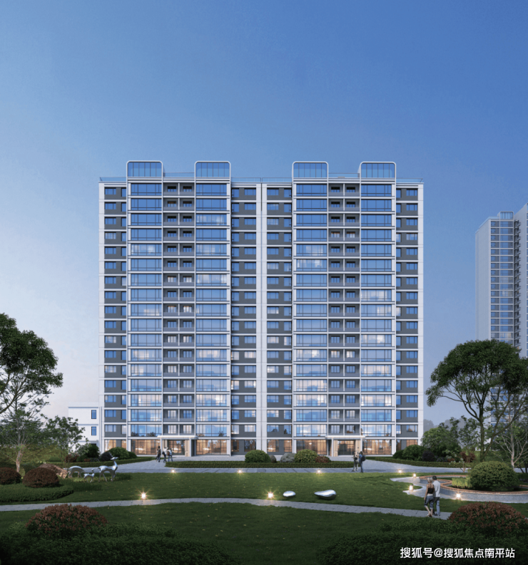 立面统一采用高颜值公建化打造,以及媲美一线城市豪宅的全封窗设计。