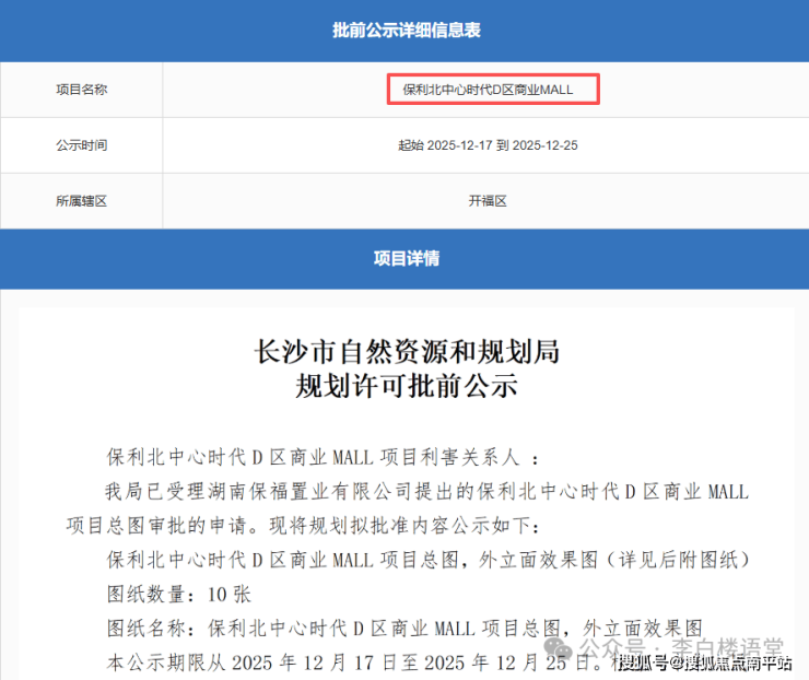 备受关注的保利北中心商业综合体,有了最新进展。就在12月16日,长沙资规局官网发布了《保利北中心时代D区商业MALL》批前公示,长沙大城北,终于迎来了大型商业综合体!