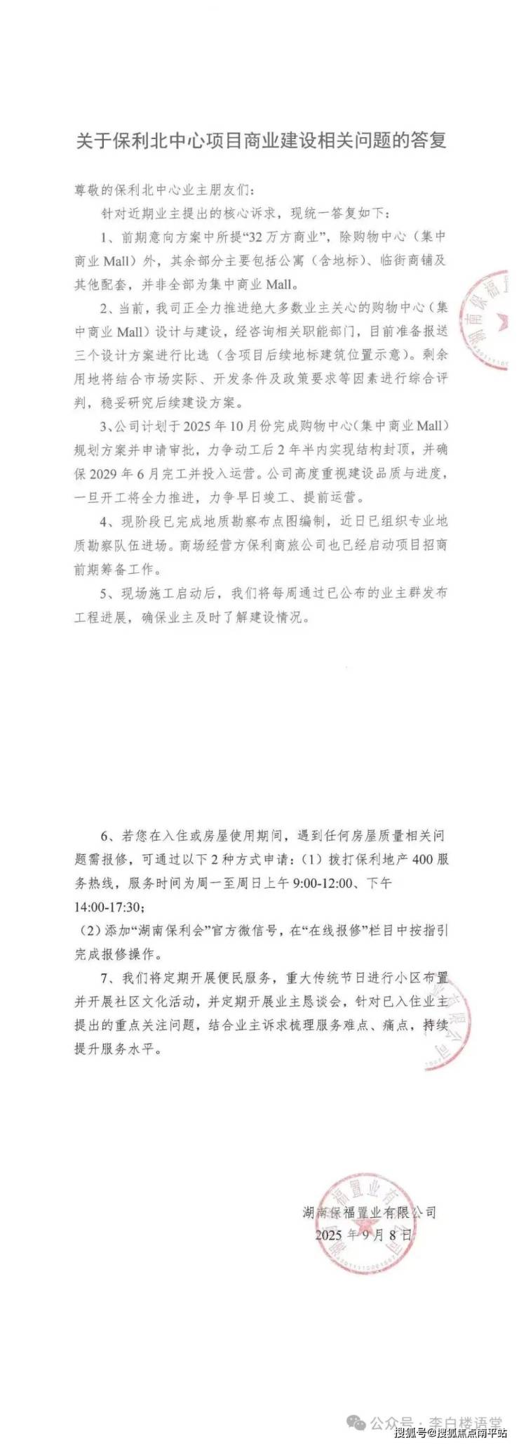 根据今年8月份项目发布的告知书,集中商业Mall计划于2025年10月30日前完成方案设计及优化,2025年12月30日前动工,2029年6月30日前完工。