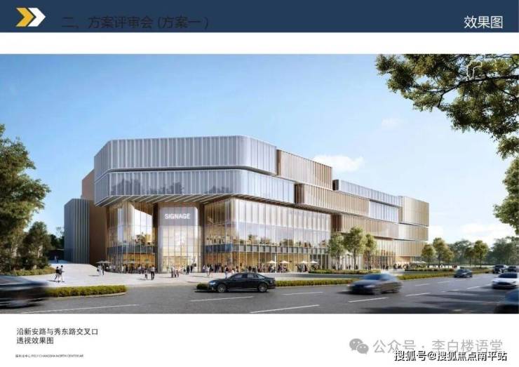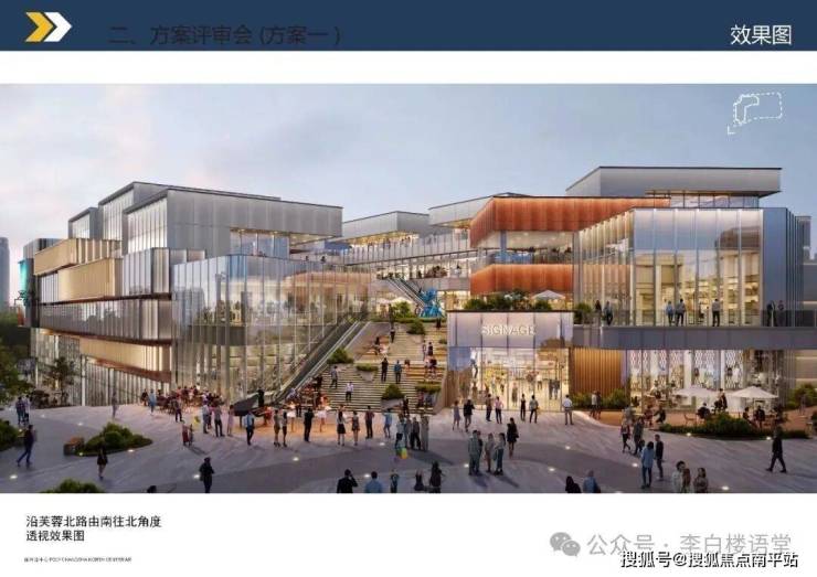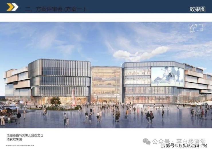 批前公示中,展示了多个角度的商场最新效果图。整体以玻璃幕墙为主,风格现代轻奢。来看这立面,漂亮不漂亮: