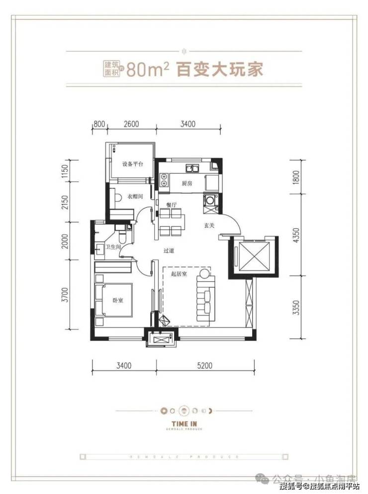 •80㎡户型图:总价120万起,单价15000元/㎡起,首付18万起