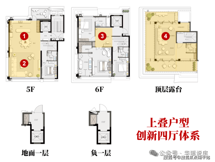 👉四套房平权,一层一代人的独栋尺度+大平层体验