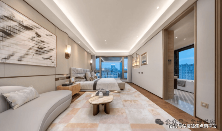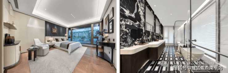 采用全套房体系,四个卧室都是星级酒店的体验,实用的同时还能解决代际矛盾。尤其是行政主卧套房,约6.8米开间搭配270°转角窗,尺度+空间全在线,完美贴合买家对豪华改善的想象。